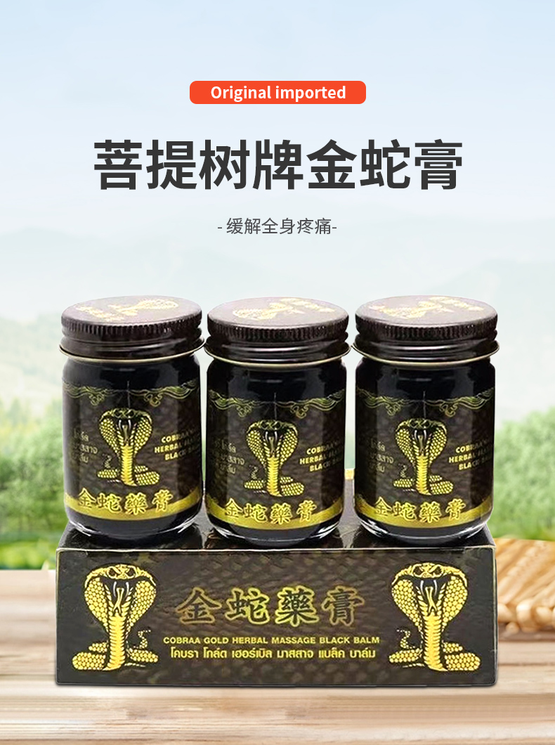 【香港直邮】泰国菩提树牌金蛇膏 醒神跌打损伤肌肉疼痛 腰酸背痛关节颈椎缓解疼痛按摩膏  菩提树牌金蛇膏50g*3瓶/盒