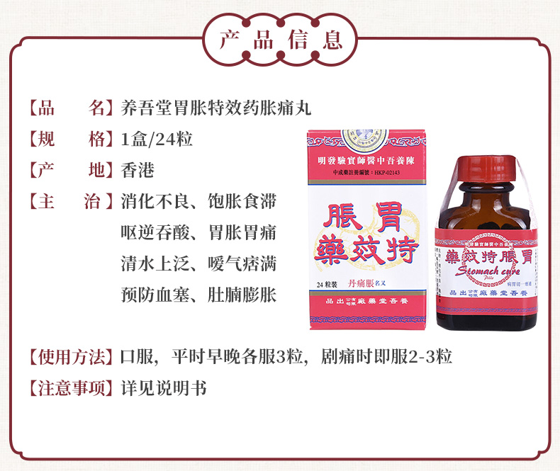 【香港直邮】原装正品 香港直邮 养吾堂胃胀特效药胀痛丸24粒装 消化不良 脾胃虚弱